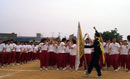 最初は普通のリレーでした。でもグッドアイデア。いろいろ変化が起こるのです。騎馬や団旗を翻しての疾走が! | ![]() |